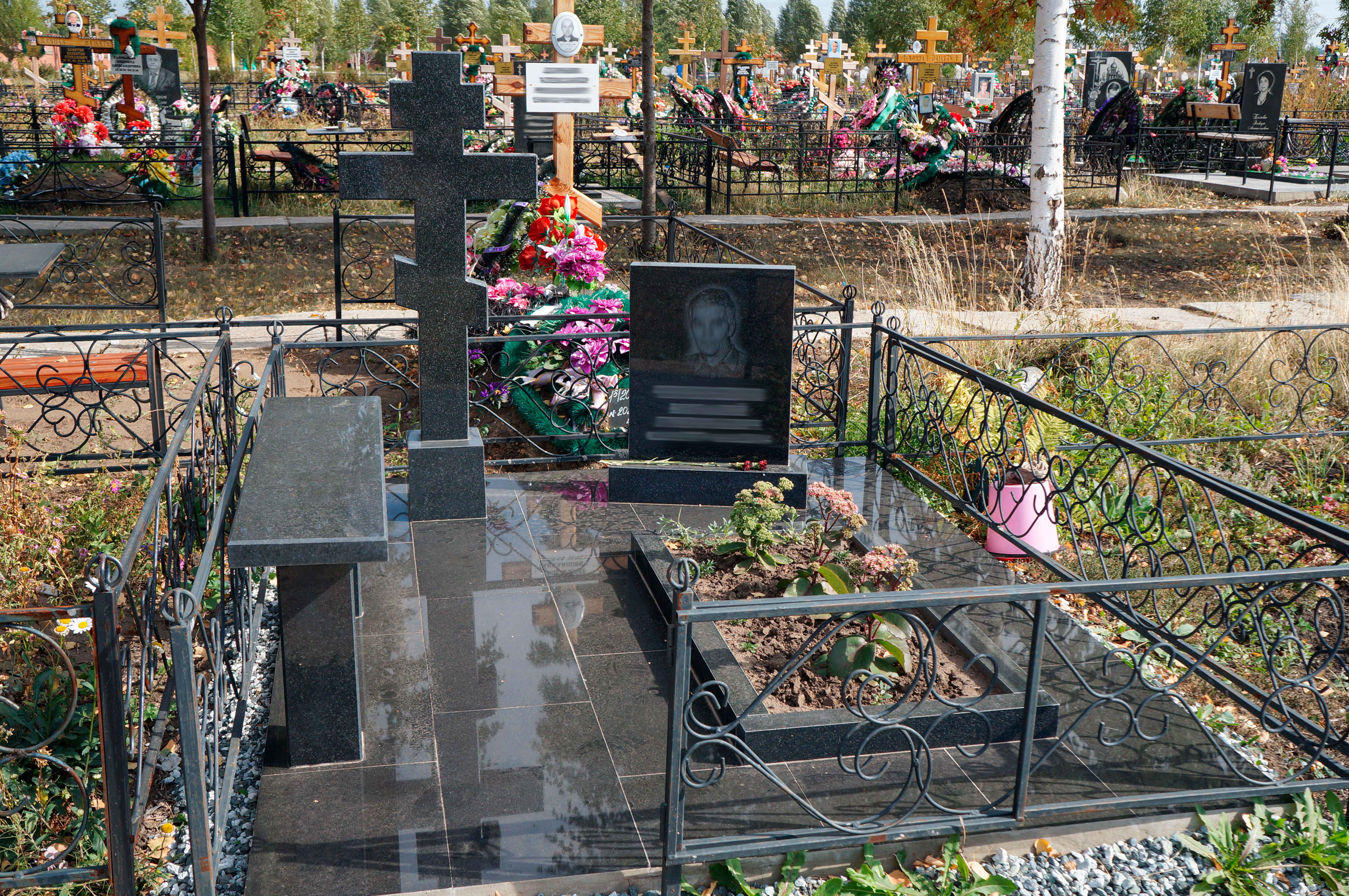 Дополнительно оплачиваются: гравировка (портрет, ФИО+даты, крестик, цветы), подготовка комплекта, оградка, установочные работы, доставка